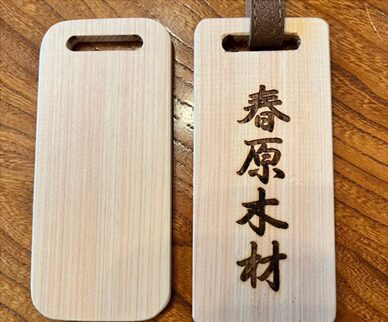 木のぬくもりが感じられるヒノキのネームタグです。プラスチックや金属にはない木の香り、温もりたっぷりです。
