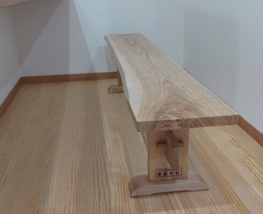 成長すると広葉樹の中でも大きい部類に入るタモ。その分胴回りも大きく育ち、まとまった量を丸太からとることができる木です。硬い木で加工しやすく、均質な木材がとれるため、家具の材料としても用いられます。